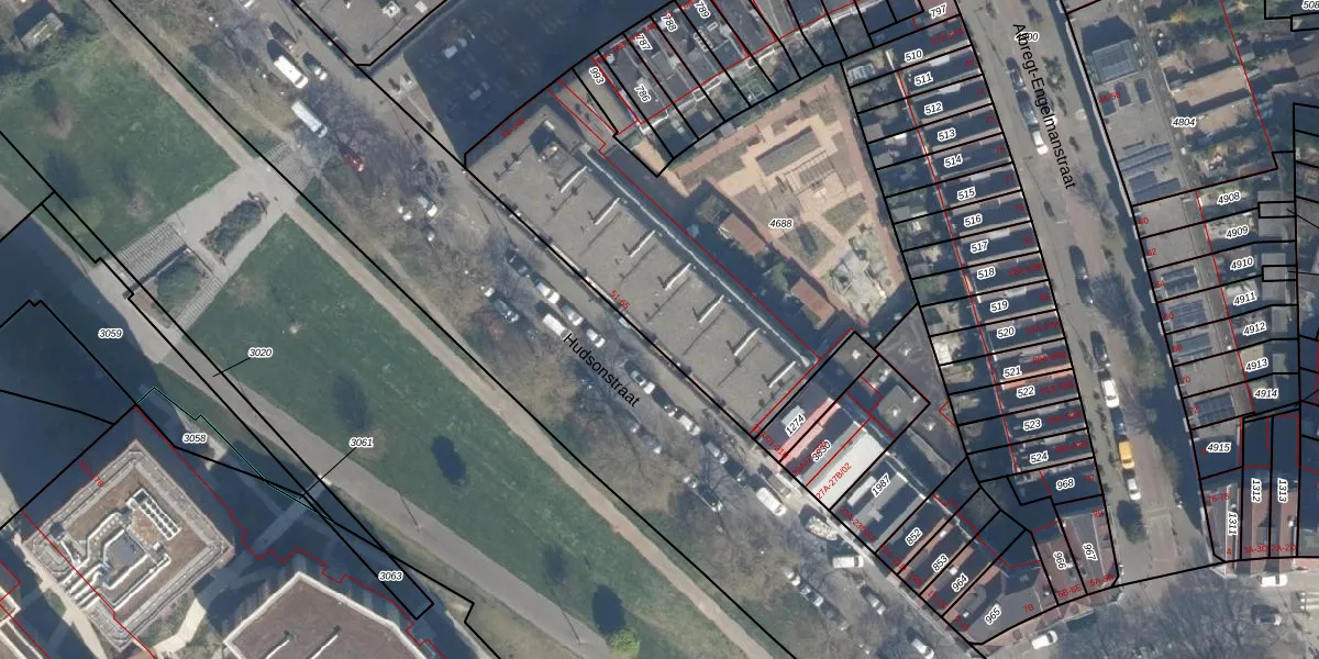 Het perceel waarop Hudsonstraat 55 staat heeft een oppervlakte van 2031 m². Dit is een zeer groot perceel. De perceeloppervlakte wordt geregistreerd door het Kadaster. Gedetailleerde informatie over de maten van dit perceel kunt u vinden in het rapport Kadastrale kaart met maatvoering van Hudsonstraat 55.