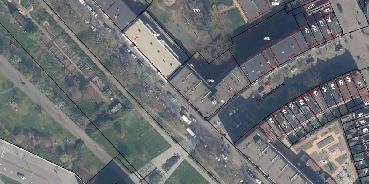 Het perceel waarop het adres ligt is DHV00-H-4686. De afkorting 'DHV00' staat voor kadastrale gemeente Delfshaven. De oppervlakte van het perceel is 921 m². Dat is groter dan gemiddeld in Delfshaven, waar de gemiddelde perceeloppervlakte op 628,89 m² ligt. De grootste perceeloppervlakte in de kadastrale gemeente is 22,2 ha. De kleinste oppervlakte bedraagt 0 m². Er zijn 28 adressen aanwezig op het perceel. De huidige grenzen van het perceel zijn digitaal in de Basisregistratie Kadaster (BRK) geregistreerd op 24-12-2004.