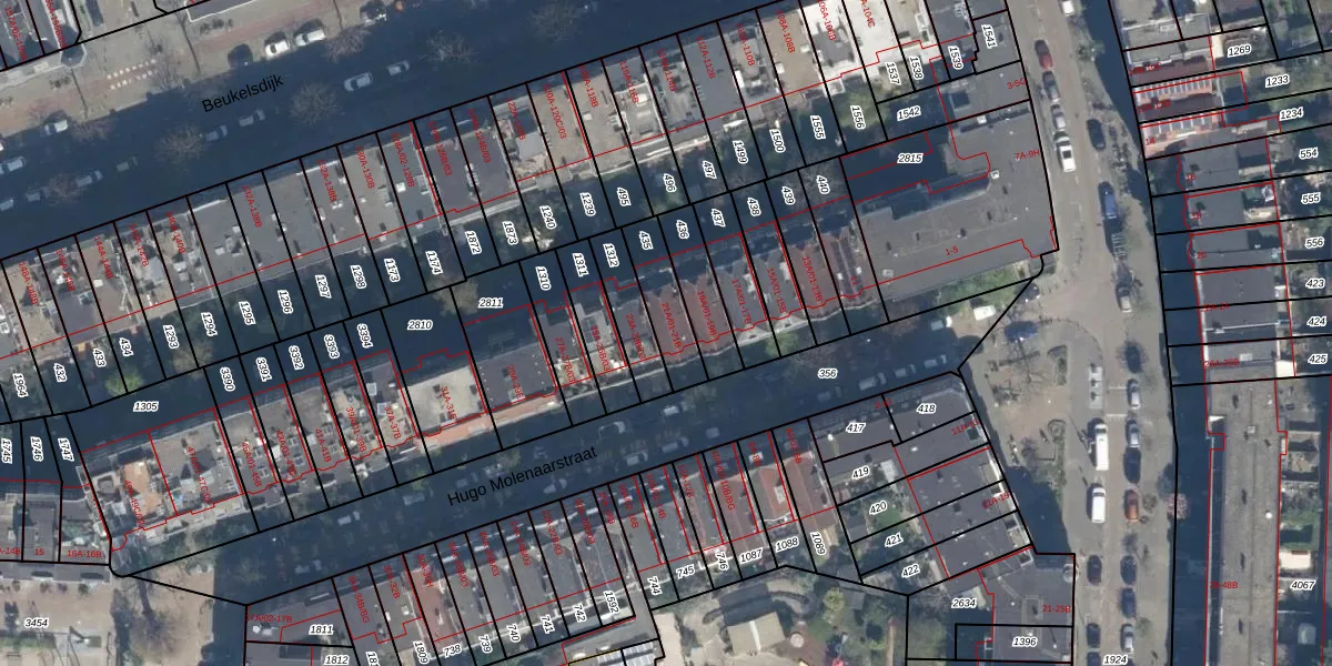 Hugo Molenaarstraat 21-A-01 is gelegen op kadastraal perceel DHV00I435. Deze kadastrale aanduiding is uniek en wordt gebruikt door het Kadaster om eigendomsrechten en andere zakelijke rechten vast te leggen. Het perceel maakt onderdeel uit van de kadastrale gemeente Delfshaven.