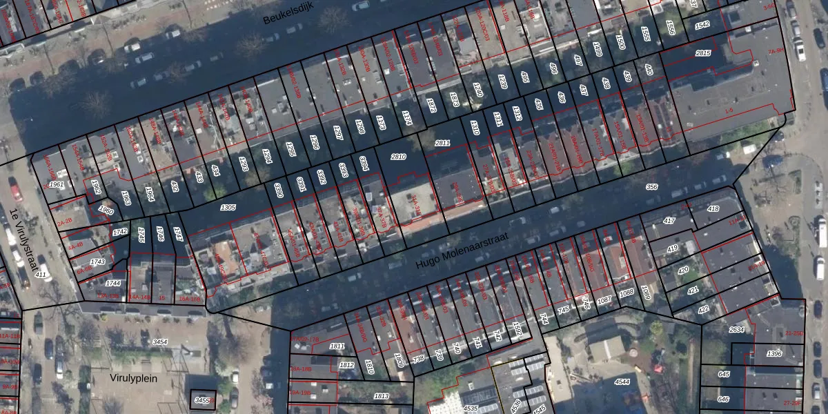 Het adres is gelegen op perceel 2810 in de sectie I en de kadastrale gemeente Delfshaven. De kadastrale aanduiding is aldus DHV00-I-2810. Het perceel is kleiner dan gemiddeld in Delfshaven. Het perceel is 285 m² groot, terwijl het gemiddelde ligt op 628,53 m². Het kleinste perceel in de kadastrale gemeente is 0 m² groot. De grootste perceeloppervlakte is 22,2 ha. Er zijn 5 adressen aanwezig op het perceel. De laatste wijziging in het de Basisregistratie Kadaster (BRK) was op 28-07-2003.