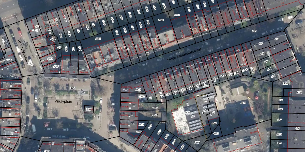 Hugo Molenaarstraat 32-A is gelegen op kadastraal perceel DHV00I1809. Deze kadastrale aanduiding is uniek en wordt gebruikt door het Kadaster om eigendomsrechten en andere zakelijke rechten vast te leggen. Het perceel maakt onderdeel uit van de kadastrale gemeente Delfshaven.