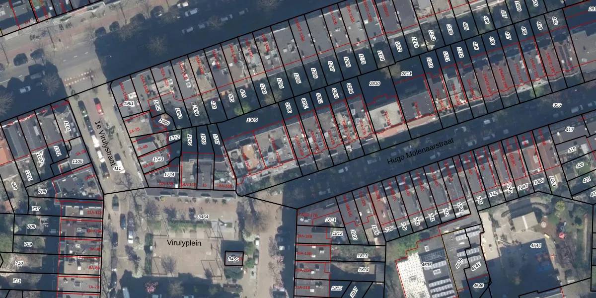 Hugo Molenaarstraat 45-A-02 is gelegen op kadastraal perceel DHV00I3390. Deze kadastrale aanduiding is uniek en wordt gebruikt door het Kadaster om eigendomsrechten en andere zakelijke rechten vast te leggen. Het perceel maakt onderdeel uit van de kadastrale gemeente Delfshaven.