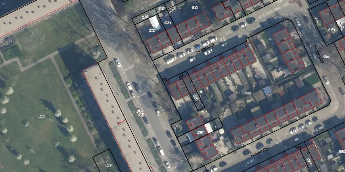 Huigendijk 1 is gelegen op kadastraal perceel ISM01B6975. Deze kadastrale aanduiding is uniek en wordt gebruikt door het Kadaster om eigendomsrechten en andere zakelijke rechten vast te leggen. Het perceel maakt onderdeel uit van de kadastrale gemeente IJsselmonde.