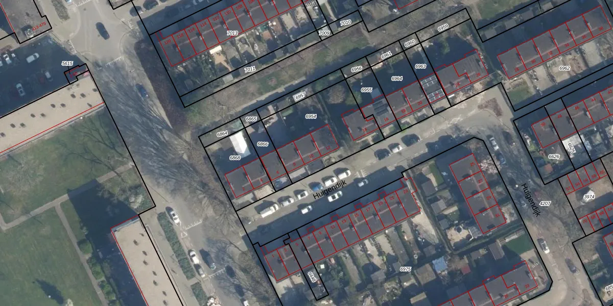 Huigendijk 10 is gelegen op kadastraal perceel ISM01B6954. Deze kadastrale aanduiding is uniek en wordt gebruikt door het Kadaster om eigendomsrechten en andere zakelijke rechten vast te leggen. Het perceel maakt onderdeel uit van de kadastrale gemeente IJsselmonde.