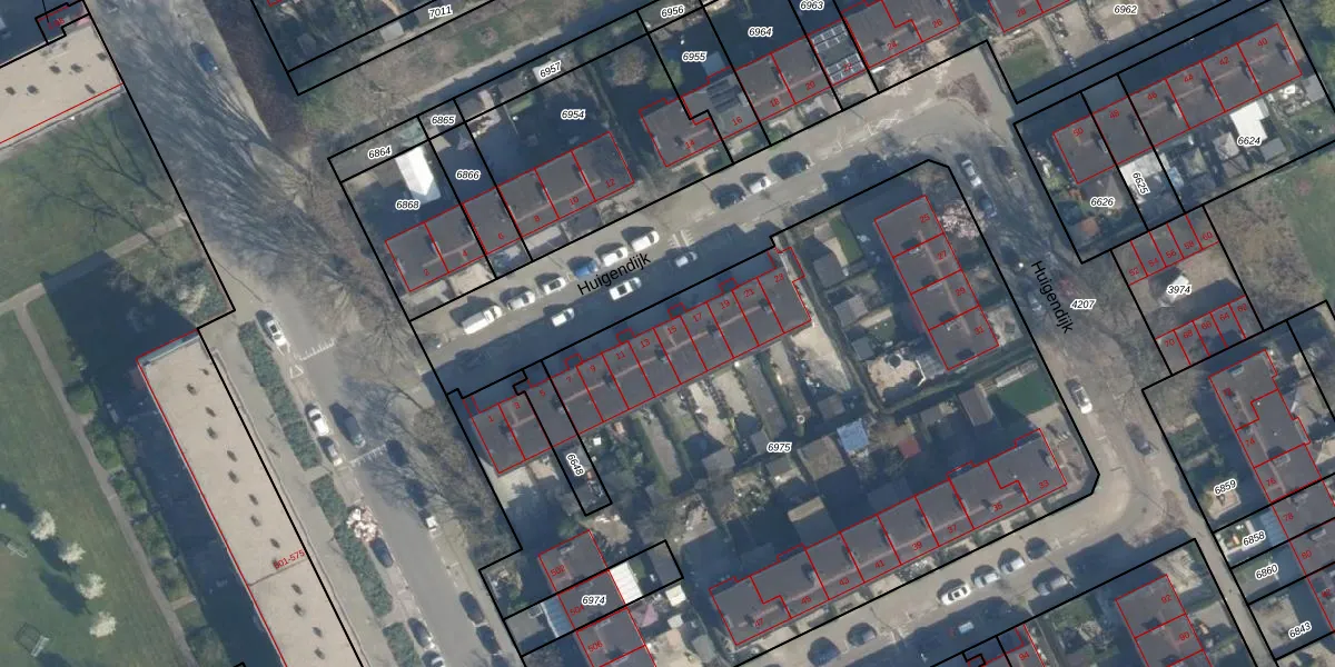 Huigendijk 15 is gelegen op kadastraal perceel ISM01B6975. Deze kadastrale aanduiding is uniek en wordt gebruikt door het Kadaster om eigendomsrechten en andere zakelijke rechten vast te leggen. Het perceel maakt onderdeel uit van de kadastrale gemeente IJsselmonde.
