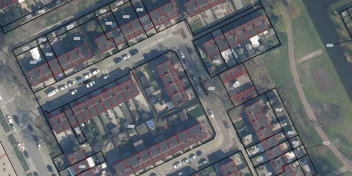 Huigendijk 29 is gelegen op kadastraal perceel ISM01B6975. Deze kadastrale aanduiding is uniek en wordt gebruikt door het Kadaster om eigendomsrechten en andere zakelijke rechten vast te leggen. Het perceel maakt onderdeel uit van de kadastrale gemeente IJsselmonde.