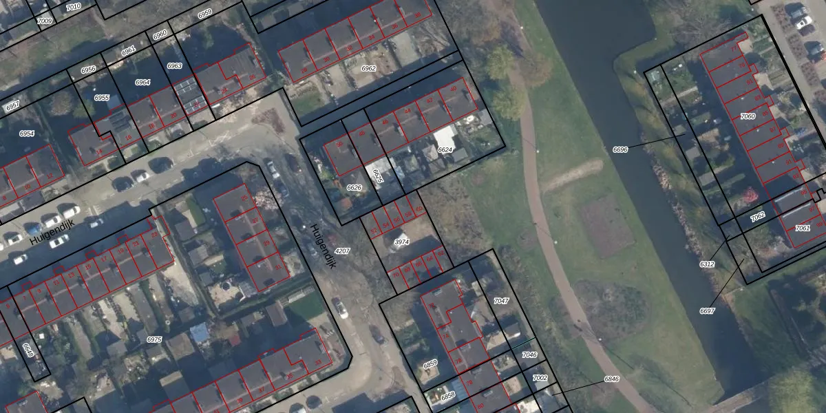 Het perceel waarop Huigendijk 60 staat heeft een oppervlakte van 322 m². Dit is een groot perceel. De perceeloppervlakte wordt geregistreerd door het Kadaster. Gedetailleerde informatie over de maten van dit perceel kunt u vinden in het rapport Kadastrale kaart met maatvoering van Huigendijk 60.