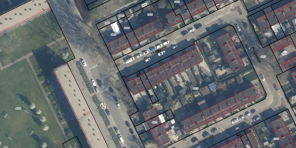 Huigendijk 7 is gelegen op kadastraal perceel ISM01B6975. Deze kadastrale aanduiding is uniek en wordt gebruikt door het Kadaster om eigendomsrechten en andere zakelijke rechten vast te leggen. Het perceel maakt onderdeel uit van de kadastrale gemeente IJsselmonde.
