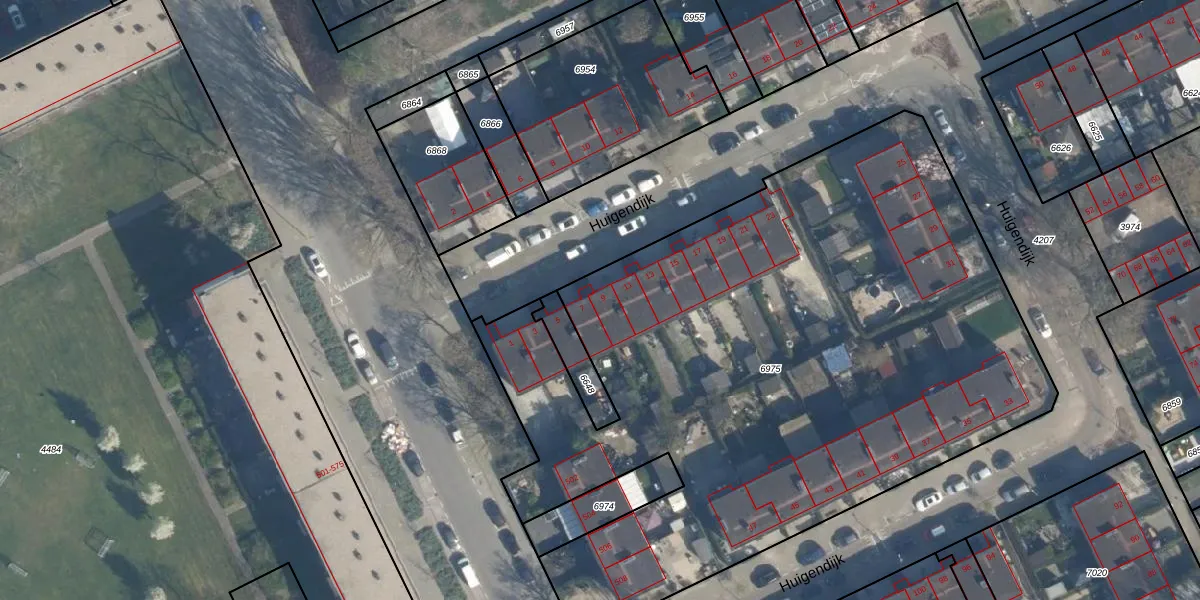 Huigendijk 9 is gelegen op kadastraal perceel ISM01B6975. Deze kadastrale aanduiding is uniek en wordt gebruikt door het Kadaster om eigendomsrechten en andere zakelijke rechten vast te leggen. Het perceel maakt onderdeel uit van de kadastrale gemeente IJsselmonde.