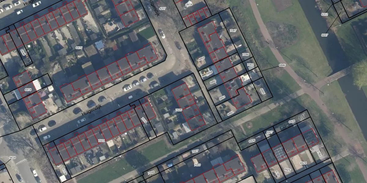 Het perceel waarop Huigendijk 92 staat heeft een oppervlakte van 960 m². Dit is een groot perceel. De perceeloppervlakte wordt geregistreerd door het Kadaster. Gedetailleerde informatie over de maten van dit perceel kunt u vinden in het rapport Kadastrale kaart met maatvoering van Huigendijk 92.