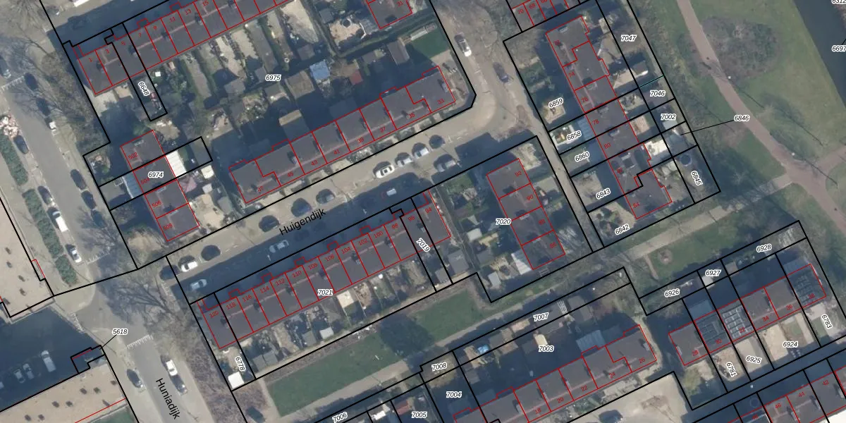 Het perceel waarop Huigendijk 94 staat heeft een oppervlakte van 960 m². Dit is een groot perceel. De perceeloppervlakte wordt geregistreerd door het Kadaster. Gedetailleerde informatie over de maten van dit perceel kunt u vinden in het rapport Kadastrale kaart met maatvoering van Huigendijk 94.
