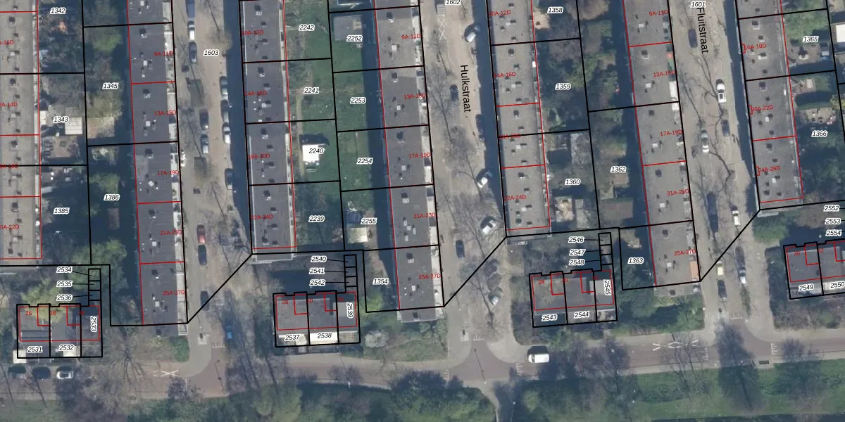 Het perceel waarop Hulkstraat 21-B staat heeft een oppervlakte van 313 m². Dit is een groot perceel. De perceeloppervlakte wordt geregistreerd door het Kadaster. Gedetailleerde informatie over de maten van dit perceel kunt u vinden in het rapport Kadastrale kaart met maatvoering van Hulkstraat 21-B.