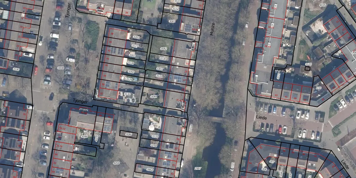 Het perceel waarop Hunze 39 staat heeft een oppervlakte van 444 m². Dit is een groot perceel. De perceeloppervlakte wordt geregistreerd door het Kadaster. Gedetailleerde informatie over de maten van dit perceel kunt u vinden in het rapport Kadastrale kaart met maatvoering van Hunze 39.