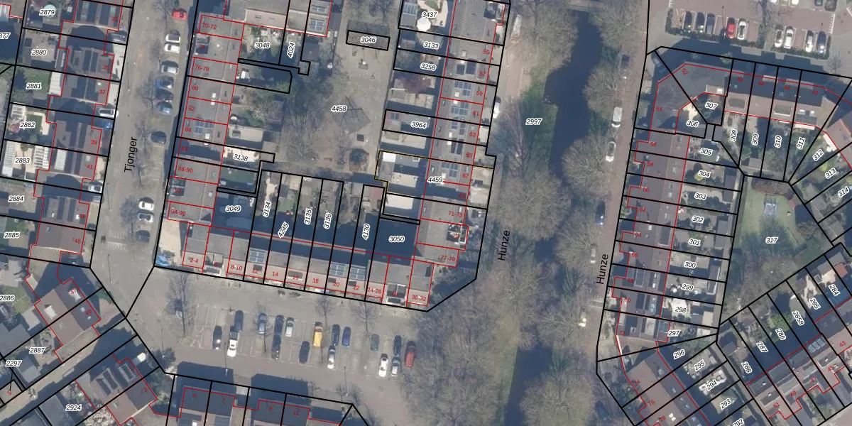 Hunze 71 is gelegen op kadastraal perceel RTD13BA3050. Deze kadastrale aanduiding is uniek en wordt gebruikt door het Kadaster om eigendomsrechten en andere zakelijke rechten vast te leggen. Het perceel maakt onderdeel uit van de kadastrale gemeente Rotterdam.