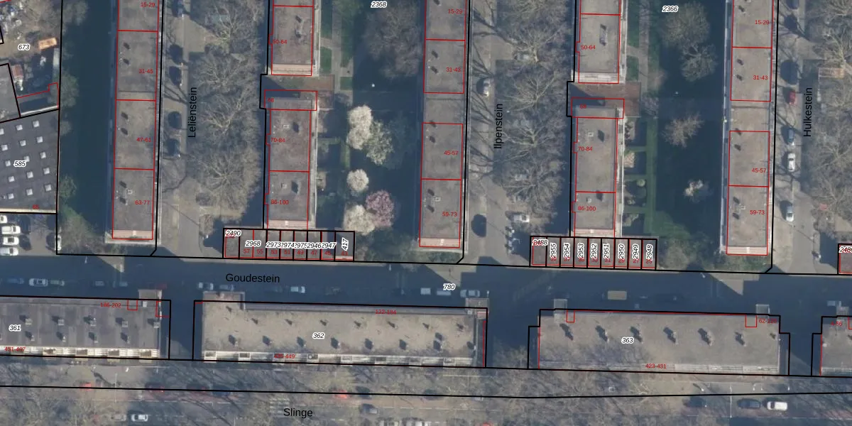 Het perceel waarop het adres ligt is CLS00-K-2368. De afkorting 'CLS00' staat voor kadastrale gemeente Charlois. De oppervlakte van het perceel is 5340 m². Dat is groter dan gemiddeld in Charlois, waar de gemiddelde perceeloppervlakte op 1146,98 m² ligt. De grootste perceeloppervlakte in de kadastrale gemeente is 1,09 km². De kleinste oppervlakte bedraagt 0 m². Op het perceel liggen in totaal 95 adressen. De huidige grenzen van het perceel zijn digitaal in de Basisregistratie Kadaster (BRK) geregistreerd op 28-10-2025.