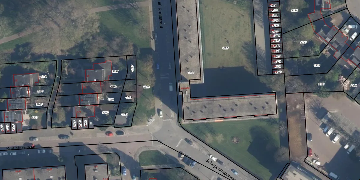 Het perceel waarop Immanuel Kantstraat 394 staat heeft een oppervlakte van 1271 m². Dit is een zeer groot perceel. De perceeloppervlakte wordt geregistreerd door het Kadaster. Gedetailleerde informatie over de maten van dit perceel kunt u vinden in het rapport Kadastrale kaart met maatvoering van Immanuel Kantstraat 394.