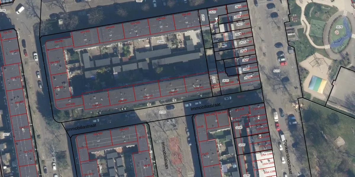 Het perceel waarop Immobiliastraat 45-F staat heeft een oppervlakte van 4544 m². Dit is een zeer groot perceel. De perceeloppervlakte wordt geregistreerd door het Kadaster. Gedetailleerde informatie over de maten van dit perceel kunt u vinden in het rapport Kadastrale kaart met maatvoering van Immobiliastraat 45-F.