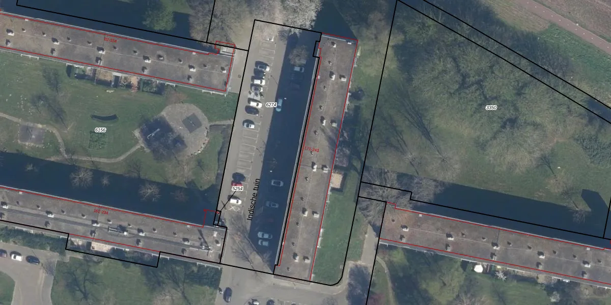 Het perceel waarop Indische tuin 239 staat heeft een oppervlakte van 3174 m². Dit is een zeer groot perceel. De perceeloppervlakte wordt geregistreerd door het Kadaster. Gedetailleerde informatie over de maten van dit perceel kunt u vinden in het rapport Kadastrale kaart met maatvoering van Indische tuin 239.