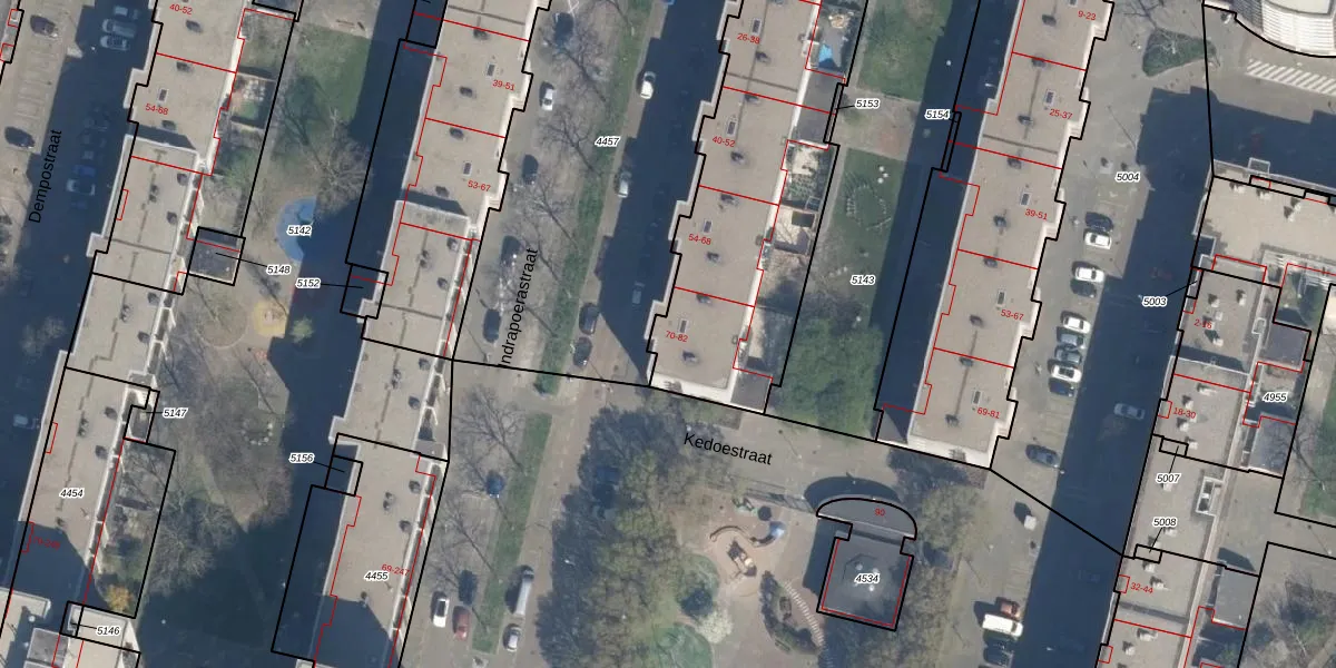 Het perceel waarop Indrapoerastraat 76 staat heeft een oppervlakte van 4215 m². Dit is een zeer groot perceel. De perceeloppervlakte wordt geregistreerd door het Kadaster. Gedetailleerde informatie over de maten van dit perceel kunt u vinden in het rapport Kadastrale kaart met maatvoering van Indrapoerastraat 76.