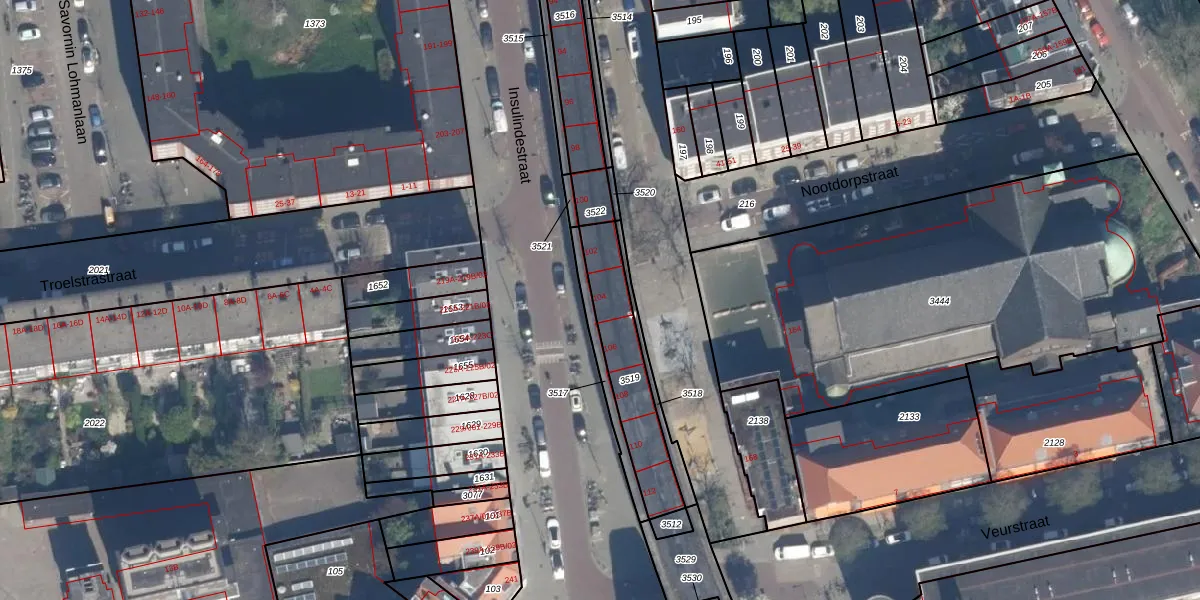 Insulindestraat 104 is gelegen op kadastraal perceel RTD10AB3519. Deze kadastrale aanduiding is uniek en wordt gebruikt door het Kadaster om eigendomsrechten en andere zakelijke rechten vast te leggen. Het perceel maakt onderdeel uit van de kadastrale gemeente Rotterdam.
