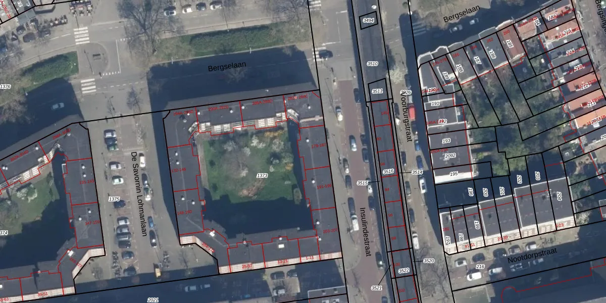 Insulindestraat 183 is gelegen op kadastraal perceel RTD10AB1373. Deze kadastrale aanduiding is uniek en wordt gebruikt door het Kadaster om eigendomsrechten en andere zakelijke rechten vast te leggen. Het perceel maakt onderdeel uit van de kadastrale gemeente Rotterdam.
