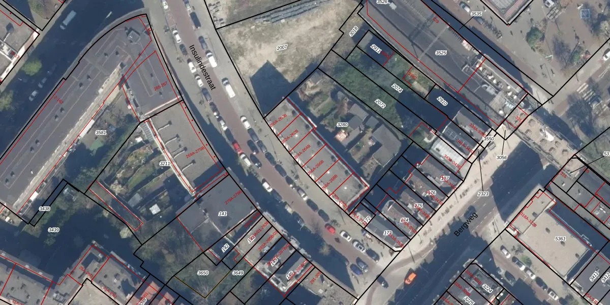 Insulindestraat 264-A is gelegen op kadastraal perceel RTD10AB3280. Deze kadastrale aanduiding is uniek en wordt gebruikt door het Kadaster om eigendomsrechten en andere zakelijke rechten vast te leggen. Het perceel maakt onderdeel uit van de kadastrale gemeente Rotterdam.