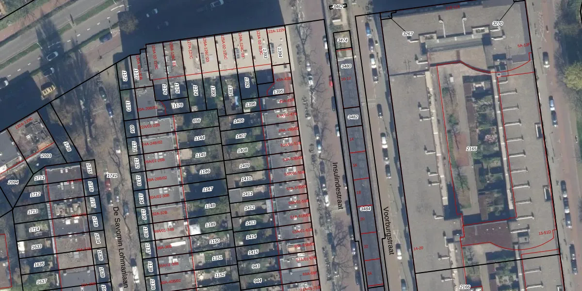 Insulindestraat 51-A-02 is gelegen op kadastraal perceel RTD10AB1408. Deze kadastrale aanduiding is uniek en wordt gebruikt door het Kadaster om eigendomsrechten en andere zakelijke rechten vast te leggen. Het perceel maakt onderdeel uit van de kadastrale gemeente Rotterdam.