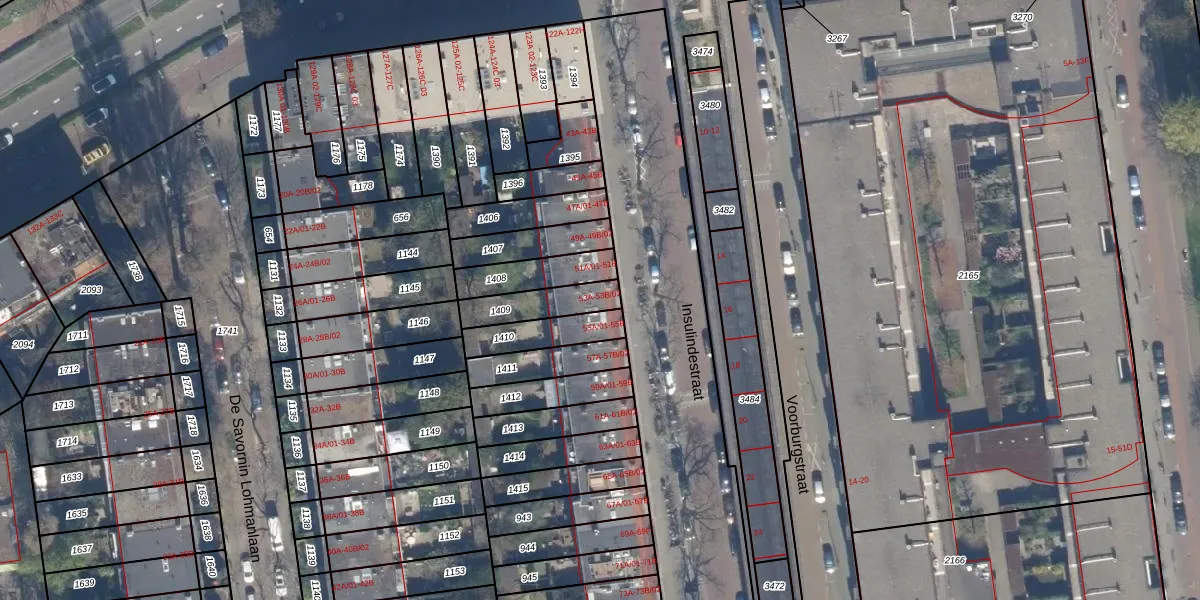 Insulindestraat 53-B-02 is gelegen op kadastraal perceel RTD10AB1409. Deze kadastrale aanduiding is uniek en wordt gebruikt door het Kadaster om eigendomsrechten en andere zakelijke rechten vast te leggen. Het perceel maakt onderdeel uit van de kadastrale gemeente Rotterdam.