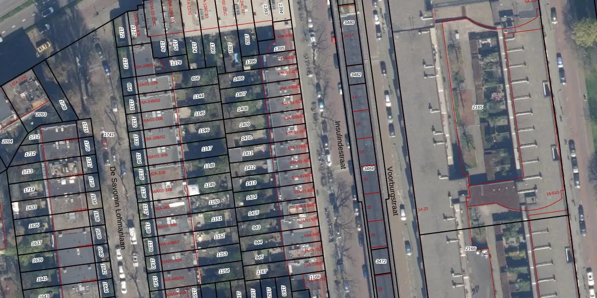 Insulindestraat 57-B-01 is gelegen op kadastraal perceel RTD10AB1411. Deze kadastrale aanduiding is uniek en wordt gebruikt door het Kadaster om eigendomsrechten en andere zakelijke rechten vast te leggen. Het perceel maakt onderdeel uit van de kadastrale gemeente Rotterdam.