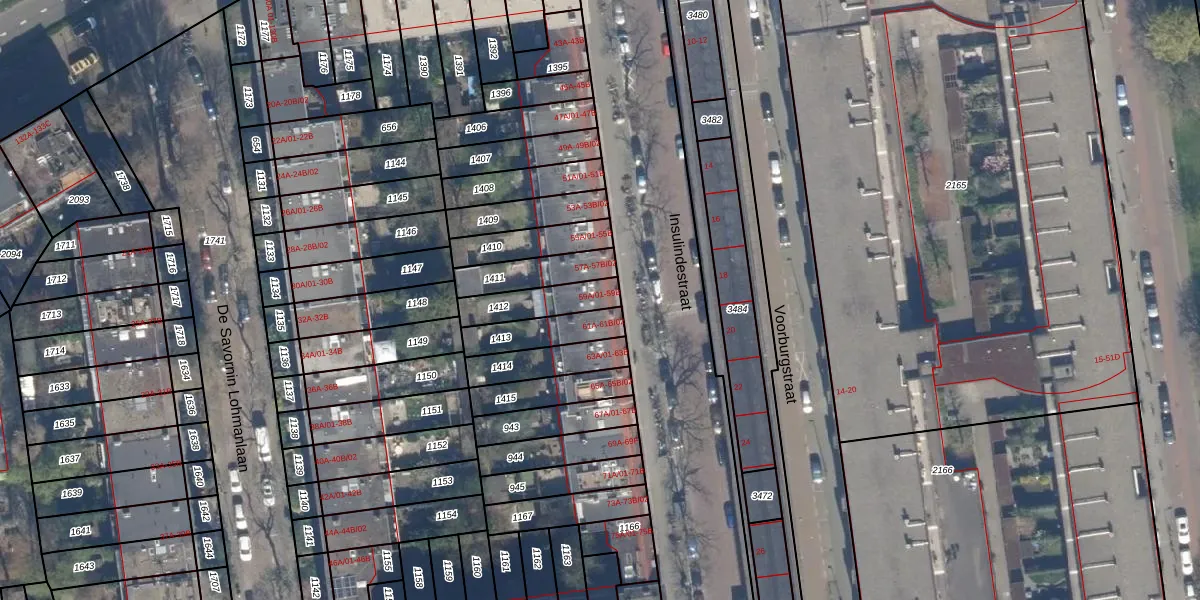 Insulindestraat 59-A-02 is gelegen op kadastraal perceel RTD10AB1412. Deze kadastrale aanduiding is uniek en wordt gebruikt door het Kadaster om eigendomsrechten en andere zakelijke rechten vast te leggen. Het perceel maakt onderdeel uit van de kadastrale gemeente Rotterdam.