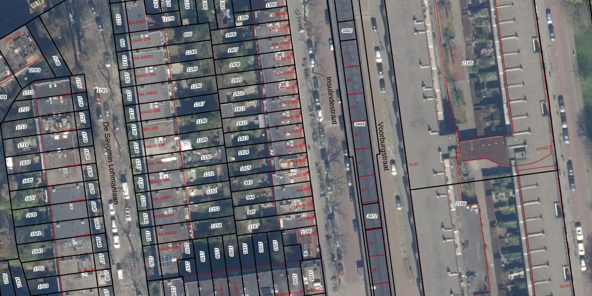 Insulindestraat 63-B is gelegen op kadastraal perceel RTD10AB1414. Deze kadastrale aanduiding is uniek en wordt gebruikt door het Kadaster om eigendomsrechten en andere zakelijke rechten vast te leggen. Het perceel maakt onderdeel uit van de kadastrale gemeente Rotterdam.