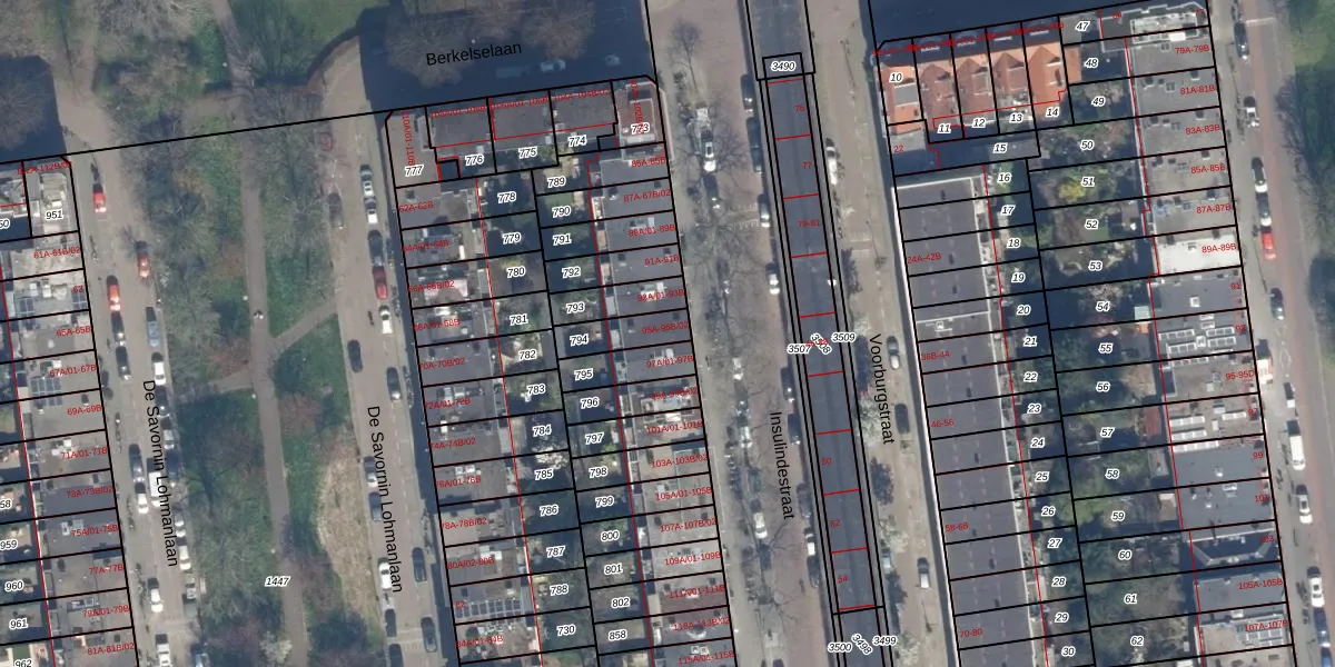 Insulindestraat 95-B-02 is gelegen op kadastraal perceel RTD10AB794. Deze kadastrale aanduiding is uniek en wordt gebruikt door het Kadaster om eigendomsrechten en andere zakelijke rechten vast te leggen. Het perceel maakt onderdeel uit van de kadastrale gemeente Rotterdam.