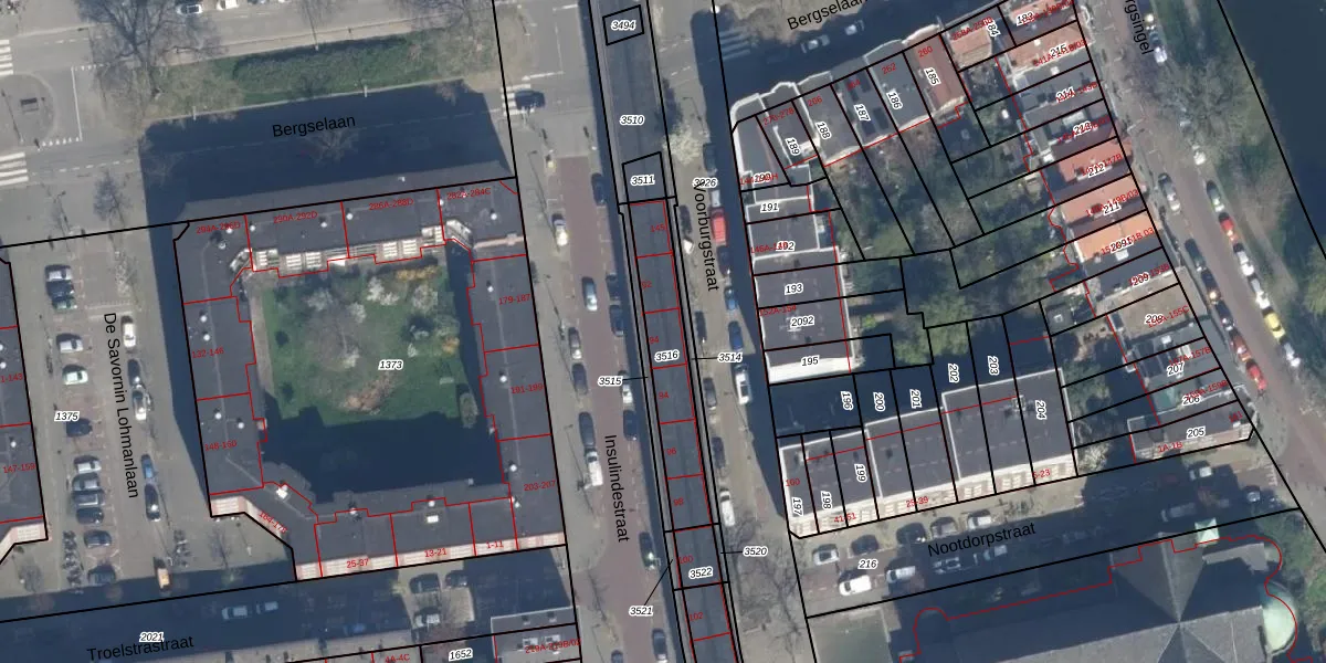Insulindestraat 96 is gelegen op kadastraal perceel RTD10AB3516. Deze kadastrale aanduiding is uniek en wordt gebruikt door het Kadaster om eigendomsrechten en andere zakelijke rechten vast te leggen. Het perceel maakt onderdeel uit van de kadastrale gemeente Rotterdam.
