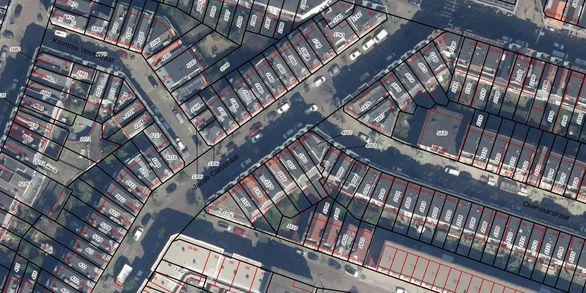 Het perceel waarop Jacob Catsstraat 18-A staat heeft een oppervlakte van 92 m². Dit is een klein perceel. De perceeloppervlakte wordt geregistreerd door het Kadaster. Gedetailleerde informatie over de maten van dit perceel kunt u vinden in het rapport Kadastrale kaart met maatvoering van Jacob Catsstraat 18-A.