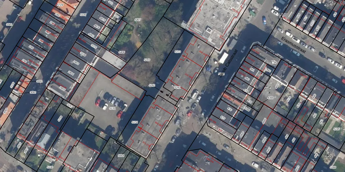 Het perceel waarop Jacob Catsstraat 343 staat heeft een oppervlakte van 724 m². Dit is een groot perceel. De perceeloppervlakte wordt geregistreerd door het Kadaster. Gedetailleerde informatie over de maten van dit perceel kunt u vinden in het rapport Kadastrale kaart met maatvoering van Jacob Catsstraat 343.