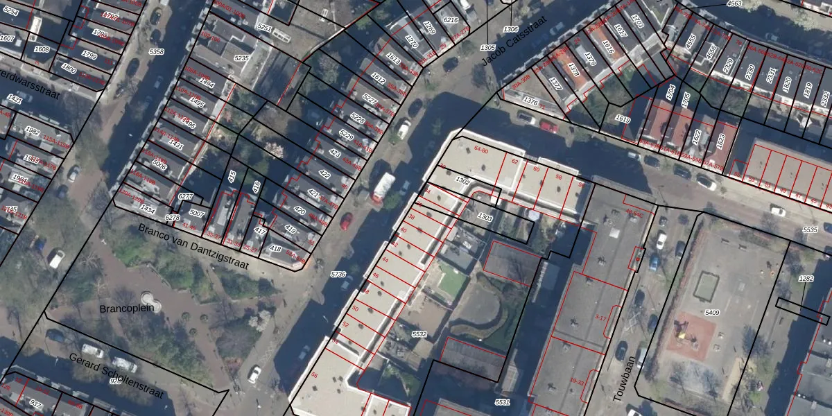 Het perceel waarop Jacob Catsstraat 36 staat heeft een oppervlakte van 2360 m². Dit is een zeer groot perceel. De perceeloppervlakte wordt geregistreerd door het Kadaster. Gedetailleerde informatie over de maten van dit perceel kunt u vinden in het rapport Kadastrale kaart met maatvoering van Jacob Catsstraat 36.