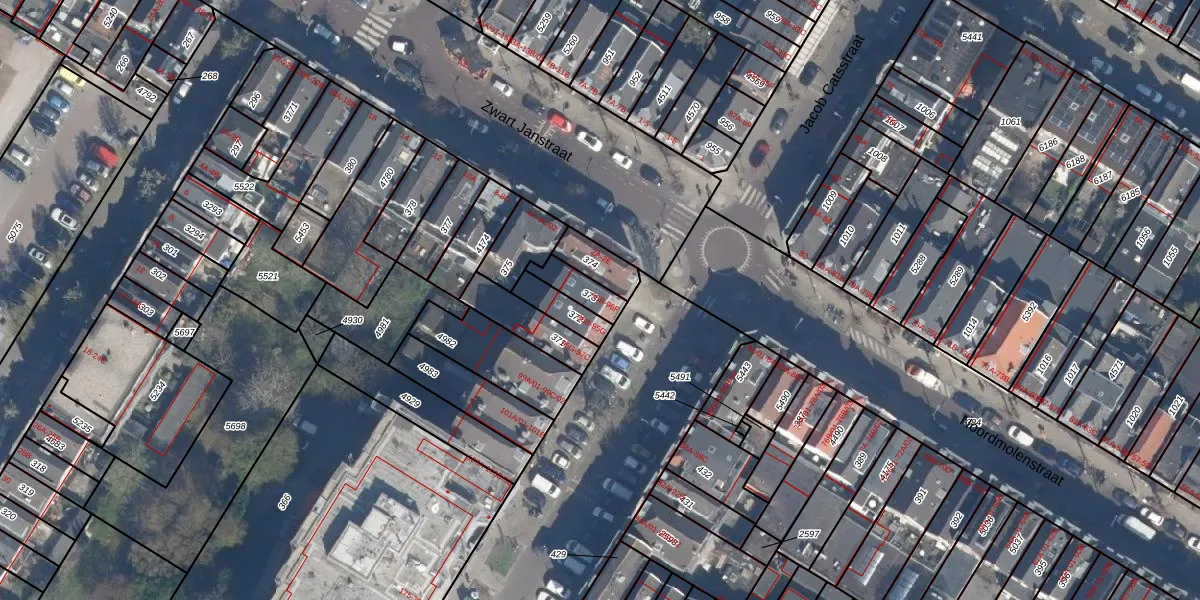 Het perceel waarop Jacob Catsstraat 95-B staat heeft een oppervlakte van 78 m². Dit is een klein perceel. De perceeloppervlakte wordt geregistreerd door het Kadaster. Gedetailleerde informatie over de maten van dit perceel kunt u vinden in het rapport Kadastrale kaart met maatvoering van Jacob Catsstraat 95-B.
