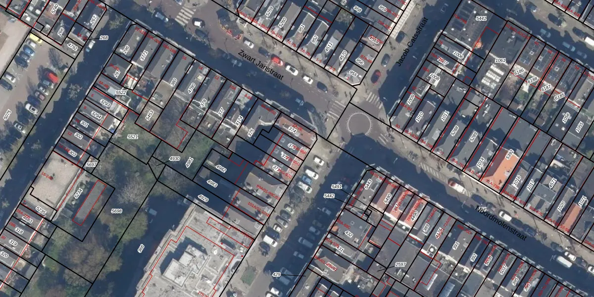 Het perceel waarop Jacob Catsstraat 95-D staat heeft een oppervlakte van 78 m². Dit is een klein perceel. De perceeloppervlakte wordt geregistreerd door het Kadaster. Gedetailleerde informatie over de maten van dit perceel kunt u vinden in het rapport Kadastrale kaart met maatvoering van Jacob Catsstraat 95-D.