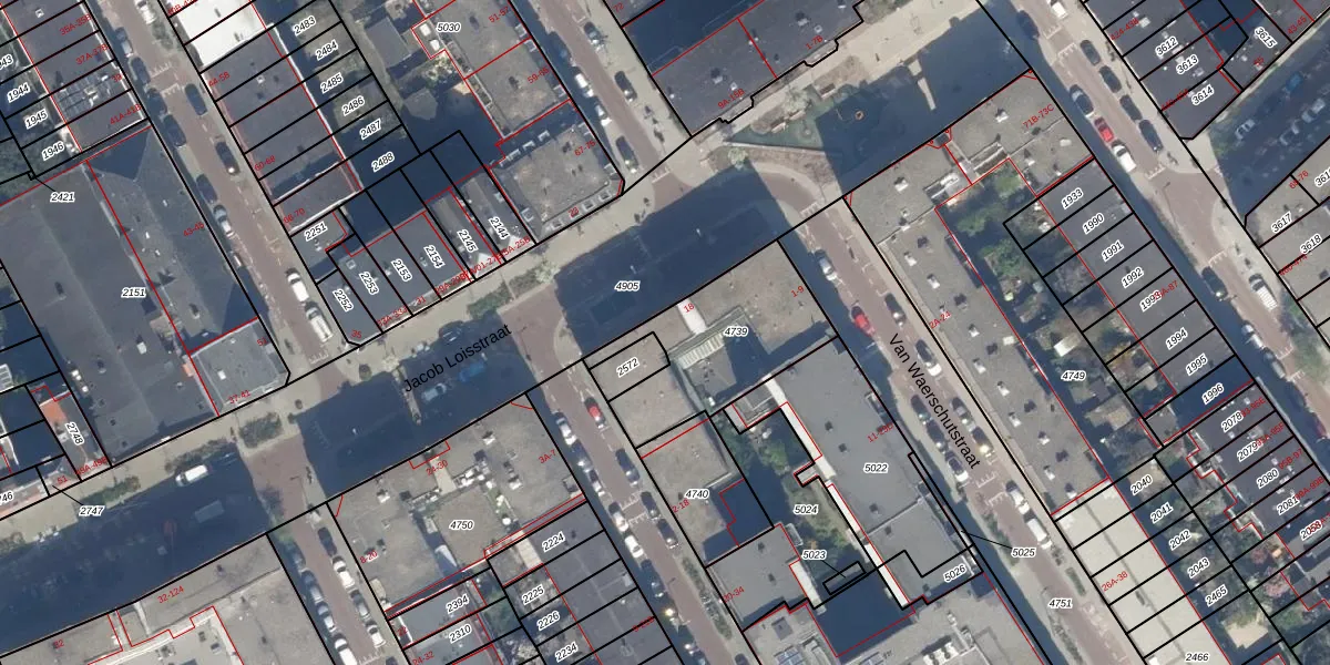 Het perceel waarop Jacob Loisstraat 18 staat heeft een oppervlakte van 515 m². Dit is een groot perceel. De perceeloppervlakte wordt geregistreerd door het Kadaster. Gedetailleerde informatie over de maten van dit perceel kunt u vinden in het rapport Kadastrale kaart met maatvoering van Jacob Loisstraat 18.