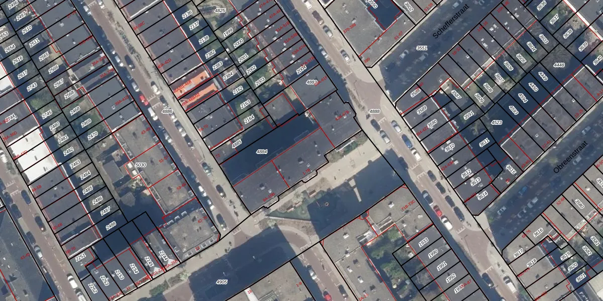 Het perceel waarop het adres ligt is RTD06-S-4884. De afkorting 'RTD06' staat voor kadastrale gemeente Rotterdam. De gemiddelde perceeloppervlakte in de kadastrale gemeente Rotterdam is 692,84 m². Dit perceel is met zijn 875 m² dus groter dan gemiddeld. De grootste perceeloppervlakte in de kadastrale gemeente is 4,7 ha. De kleinste oppervlakte bedraagt 0 m². Op het perceel liggen in totaal 22 adressen. De huidige grenzen van het perceel zijn digitaal in de Basisregistratie Kadaster (BRK) geregistreerd op 10-07-2003.