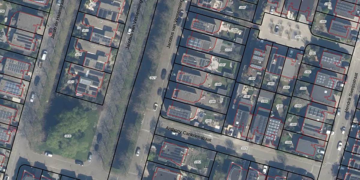 Het perceel waarop Jacobus van Vessemsingel 13 staat heeft een oppervlakte van 359 m². Dit is een groot perceel. De perceeloppervlakte wordt geregistreerd door het Kadaster. Gedetailleerde informatie over de maten van dit perceel kunt u vinden in het rapport Kadastrale kaart met maatvoering van Jacobus van Vessemsingel 13.