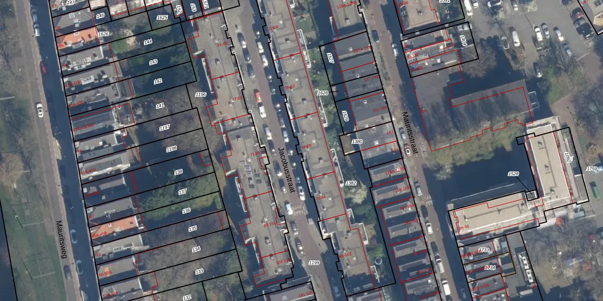 Het perceel waarop Jacobusstraat 54 staat heeft een oppervlakte van 2800 m². Dit is een zeer groot perceel. De perceeloppervlakte wordt geregistreerd door het Kadaster. Gedetailleerde informatie over de maten van dit perceel kunt u vinden in het rapport Kadastrale kaart met maatvoering van Jacobusstraat 54.