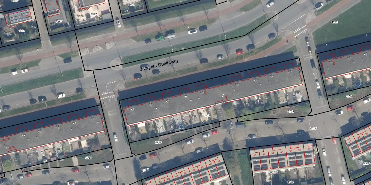 Het perceel waarop Jacques Dutilhweg 226 staat heeft een oppervlakte van 2355 m². Dit is een zeer groot perceel. De perceeloppervlakte wordt geregistreerd door het Kadaster. Gedetailleerde informatie over de maten van dit perceel kunt u vinden in het rapport Kadastrale kaart met maatvoering van Jacques Dutilhweg 226.