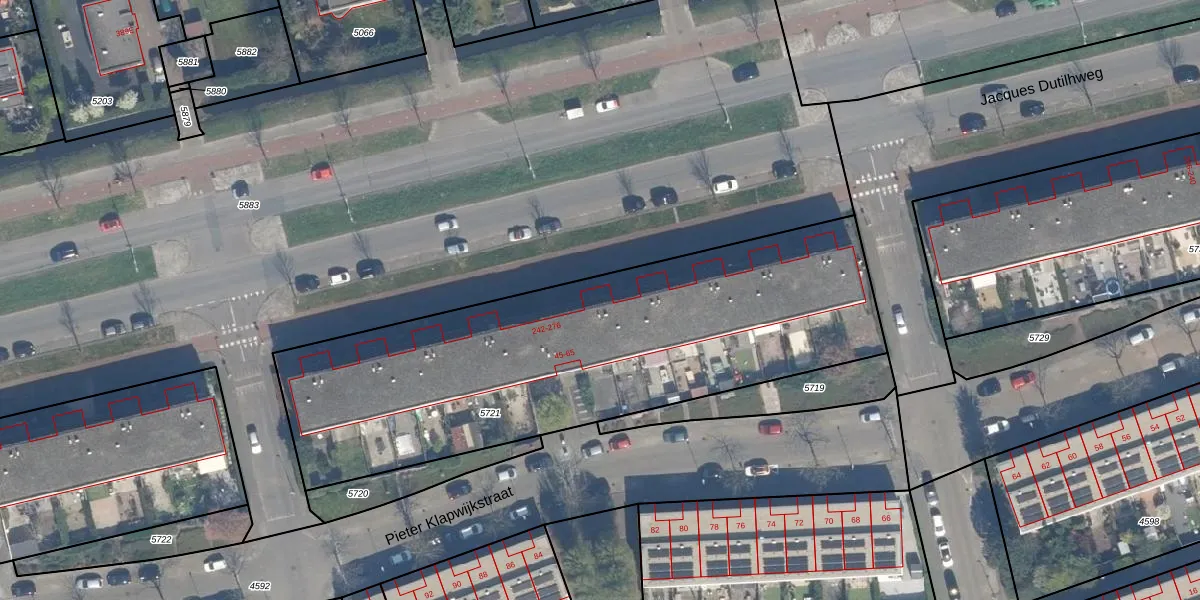 Jacques Dutilhweg 258 is gelegen op kadastraal perceel KLG00C5721. Deze kadastrale aanduiding is uniek en wordt gebruikt door het Kadaster om eigendomsrechten en andere zakelijke rechten vast te leggen. Het perceel maakt onderdeel uit van de kadastrale gemeente Kralingen.