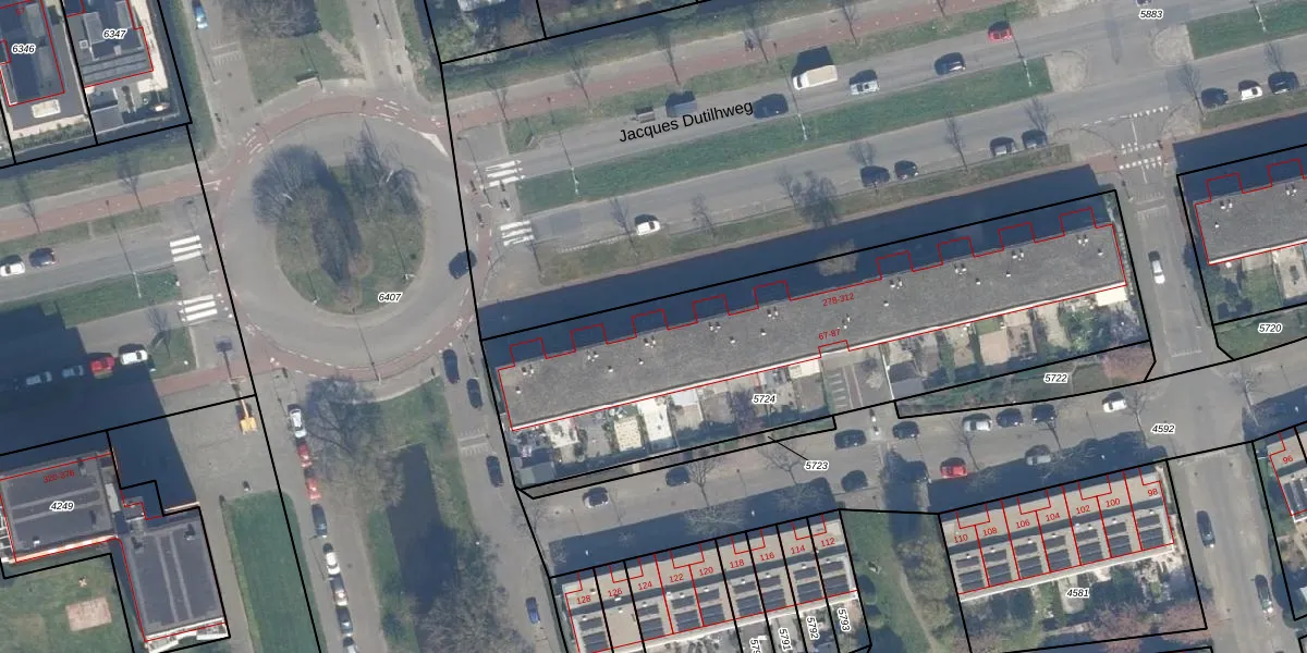 Het perceel waarop Jacques Dutilhweg 302 staat heeft een oppervlakte van 2353 m². Dit is een zeer groot perceel. De perceeloppervlakte wordt geregistreerd door het Kadaster. Gedetailleerde informatie over de maten van dit perceel kunt u vinden in het rapport Kadastrale kaart met maatvoering van Jacques Dutilhweg 302.