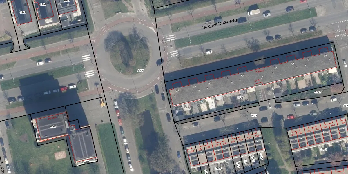 Het perceel waarop Jacques Dutilhweg 312 staat heeft een oppervlakte van 2353 m². Dit is een zeer groot perceel. De perceeloppervlakte wordt geregistreerd door het Kadaster. Gedetailleerde informatie over de maten van dit perceel kunt u vinden in het rapport Kadastrale kaart met maatvoering van Jacques Dutilhweg 312.