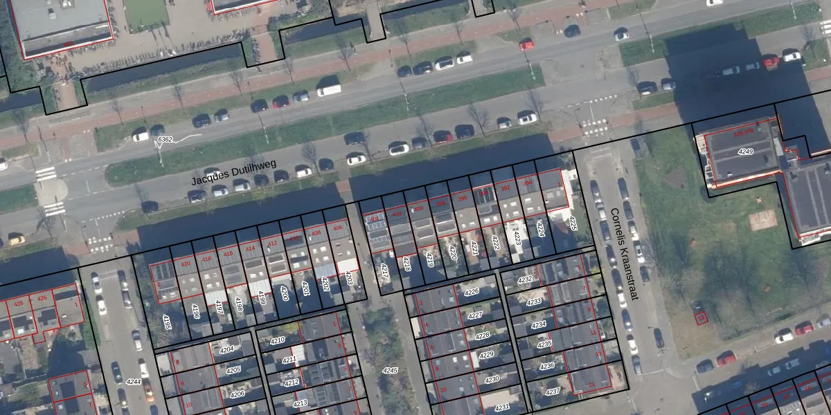 Jacques Dutilhweg 400 is gelegen op kadastraal perceel KLG00C4219. Deze kadastrale aanduiding is uniek en wordt gebruikt door het Kadaster om eigendomsrechten en andere zakelijke rechten vast te leggen. Het perceel maakt onderdeel uit van de kadastrale gemeente Kralingen.