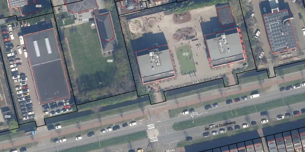Het perceel waarop Jacques Dutilhweg 403 staat heeft een oppervlakte van 4475 m². Dit is een zeer groot perceel. De perceeloppervlakte wordt geregistreerd door het Kadaster. Gedetailleerde informatie over de maten van dit perceel kunt u vinden in het rapport Kadastrale kaart met maatvoering van Jacques Dutilhweg 403.