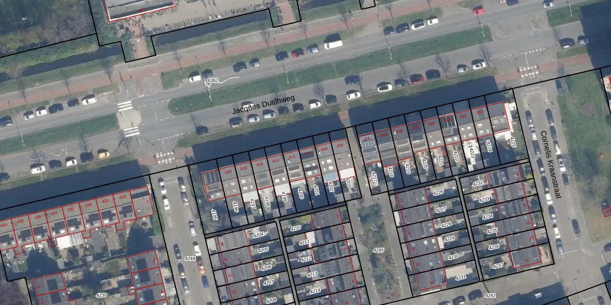 Jacques Dutilhweg 410 is gelegen op kadastraal perceel KLG00C4201. Deze kadastrale aanduiding is uniek en wordt gebruikt door het Kadaster om eigendomsrechten en andere zakelijke rechten vast te leggen. Het perceel maakt onderdeel uit van de kadastrale gemeente Kralingen.