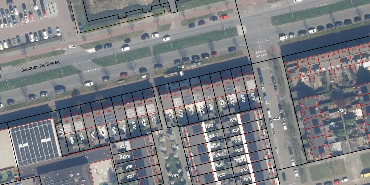 Jacques Dutilhweg 472 is gelegen op kadastraal perceel KLG00L2633. Deze kadastrale aanduiding is uniek en wordt gebruikt door het Kadaster om eigendomsrechten en andere zakelijke rechten vast te leggen. Het perceel maakt onderdeel uit van de kadastrale gemeente Kralingen.